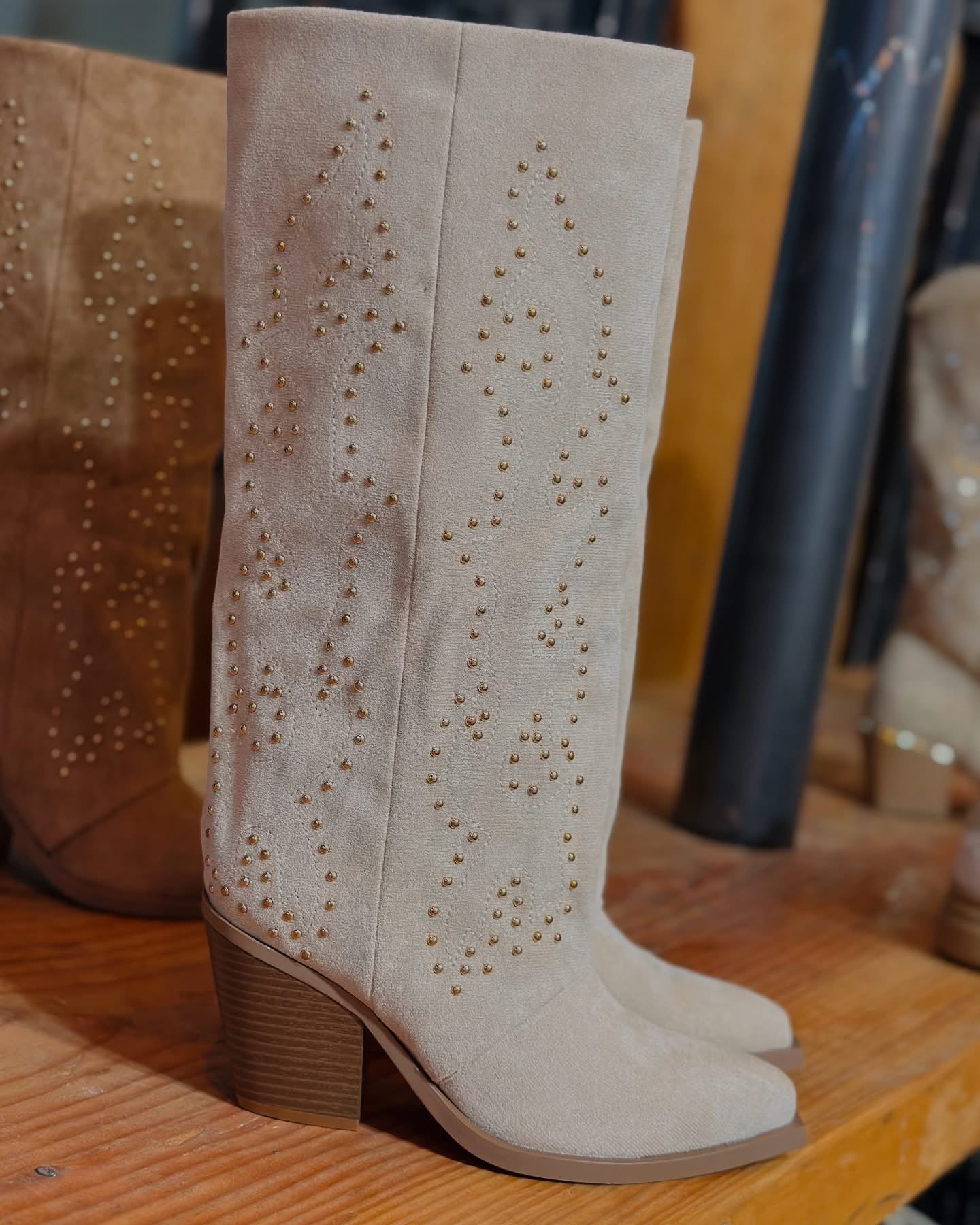 Découvrez la satisfaction suprême avec les bottes santiag "Sandy"beige cloutées. Profitez d'un style unique et d'une confiance sans fin grâce à ces bottes santiag beige ornées de clous. Grâce à leur conception cloutée, ces bottes vous offrent une allure remarquable et une adhérence inégalée pour des pas sûrs et audacieux.