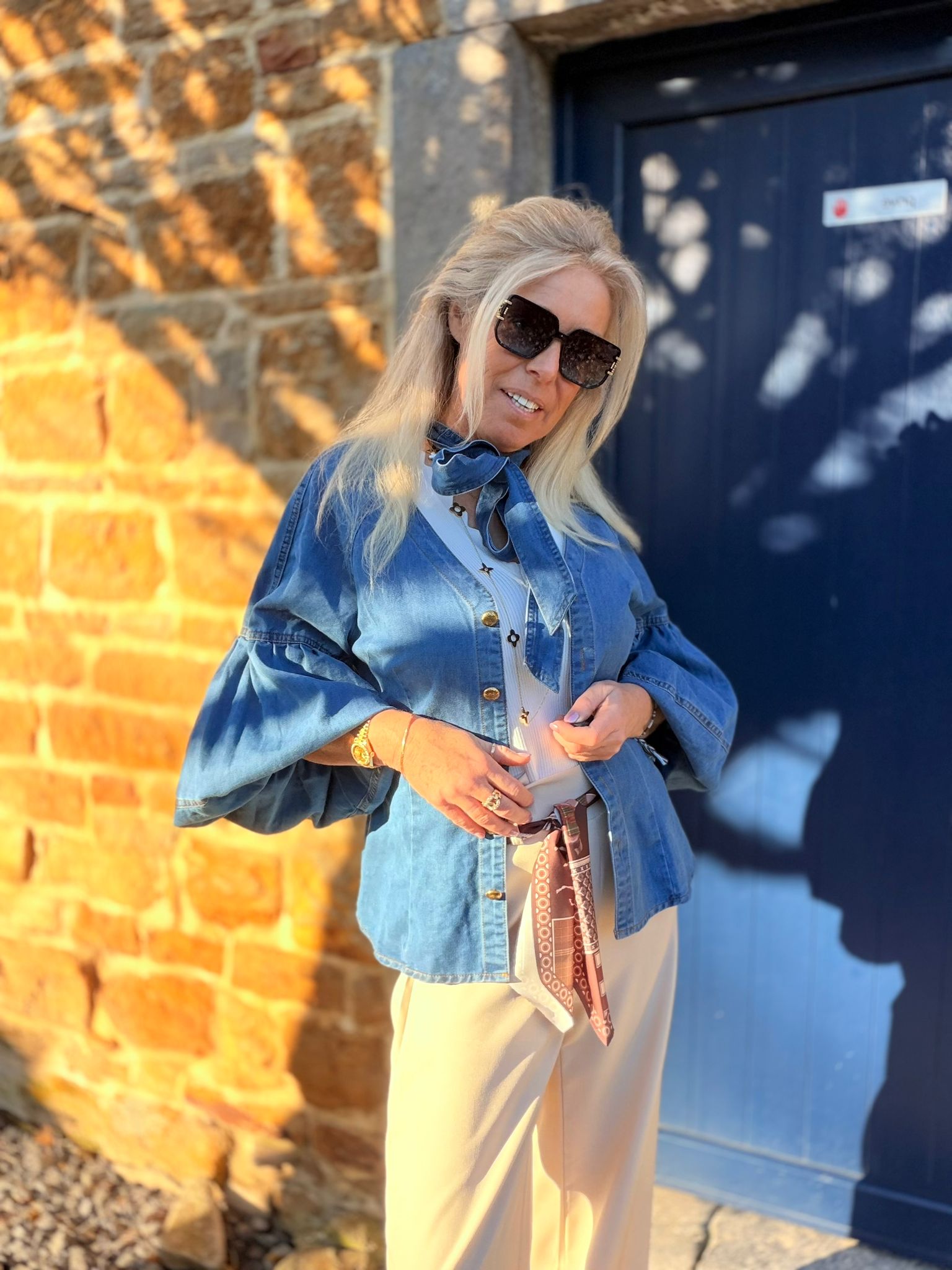 Chemise en jeans manches ballon