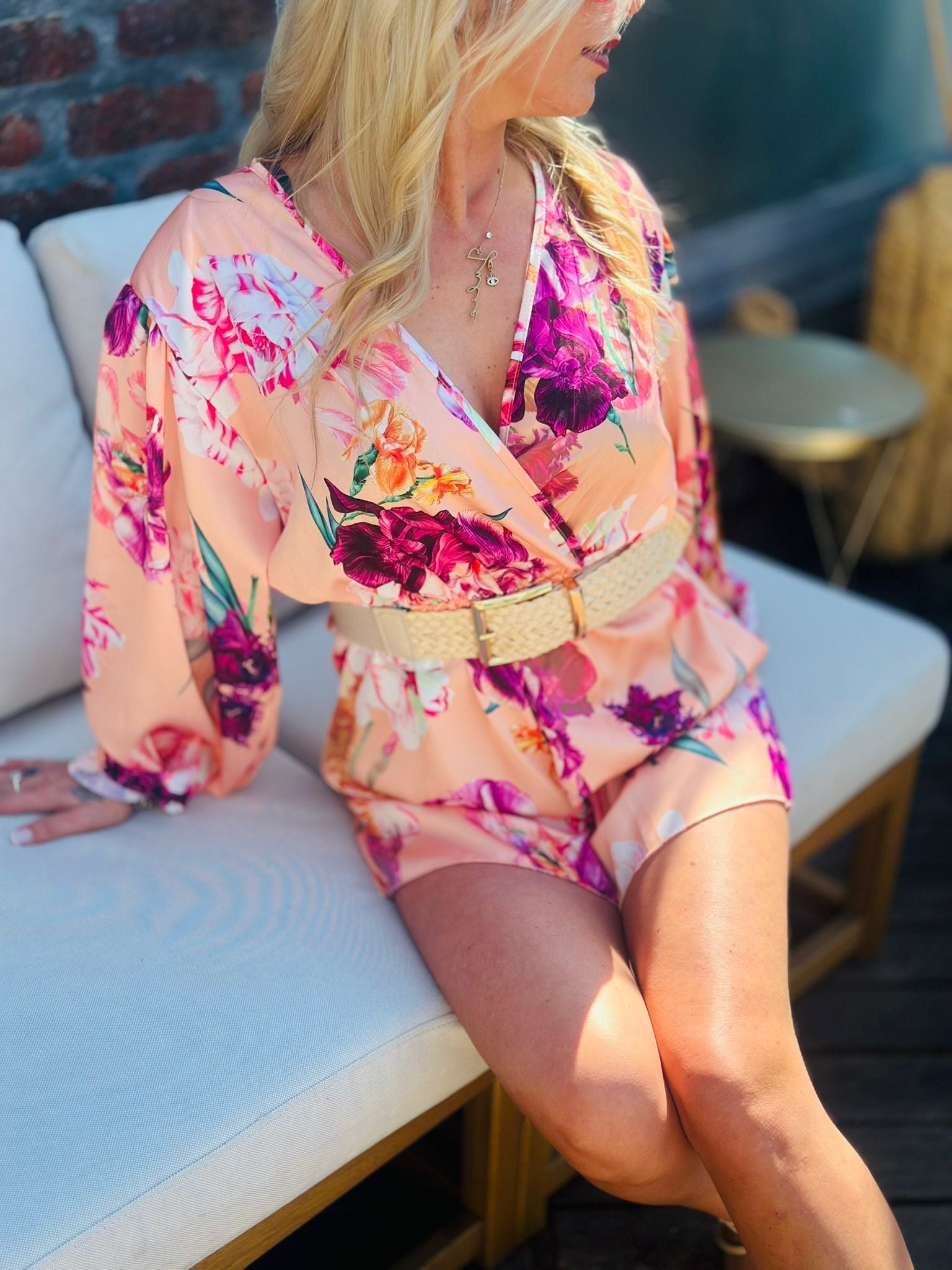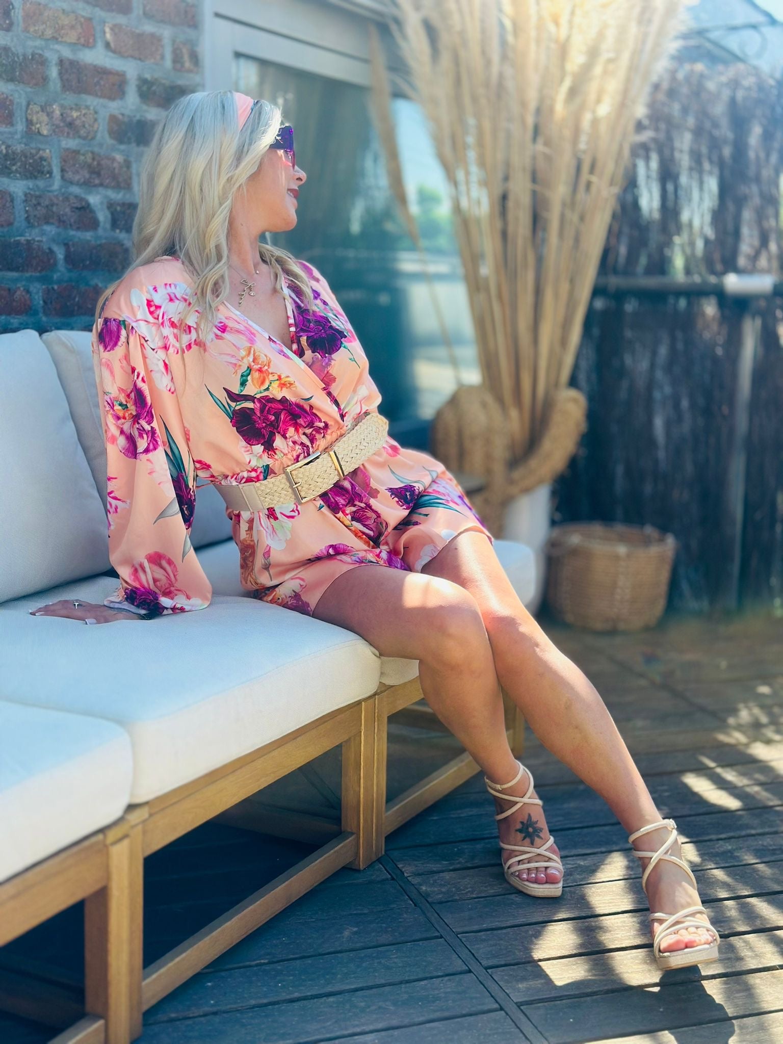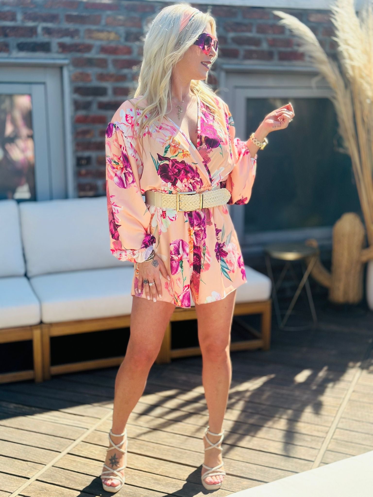 La combinaison short "ALYA" est l'option parfaite pour un look estival et féminin. Conçue en tissu satiné et dotée d'un joli motif fleuri, elle allie confort et élégance. Idéale pour les journées ensoleillées, elle vous donnera un look frais et raffiné à la fois.