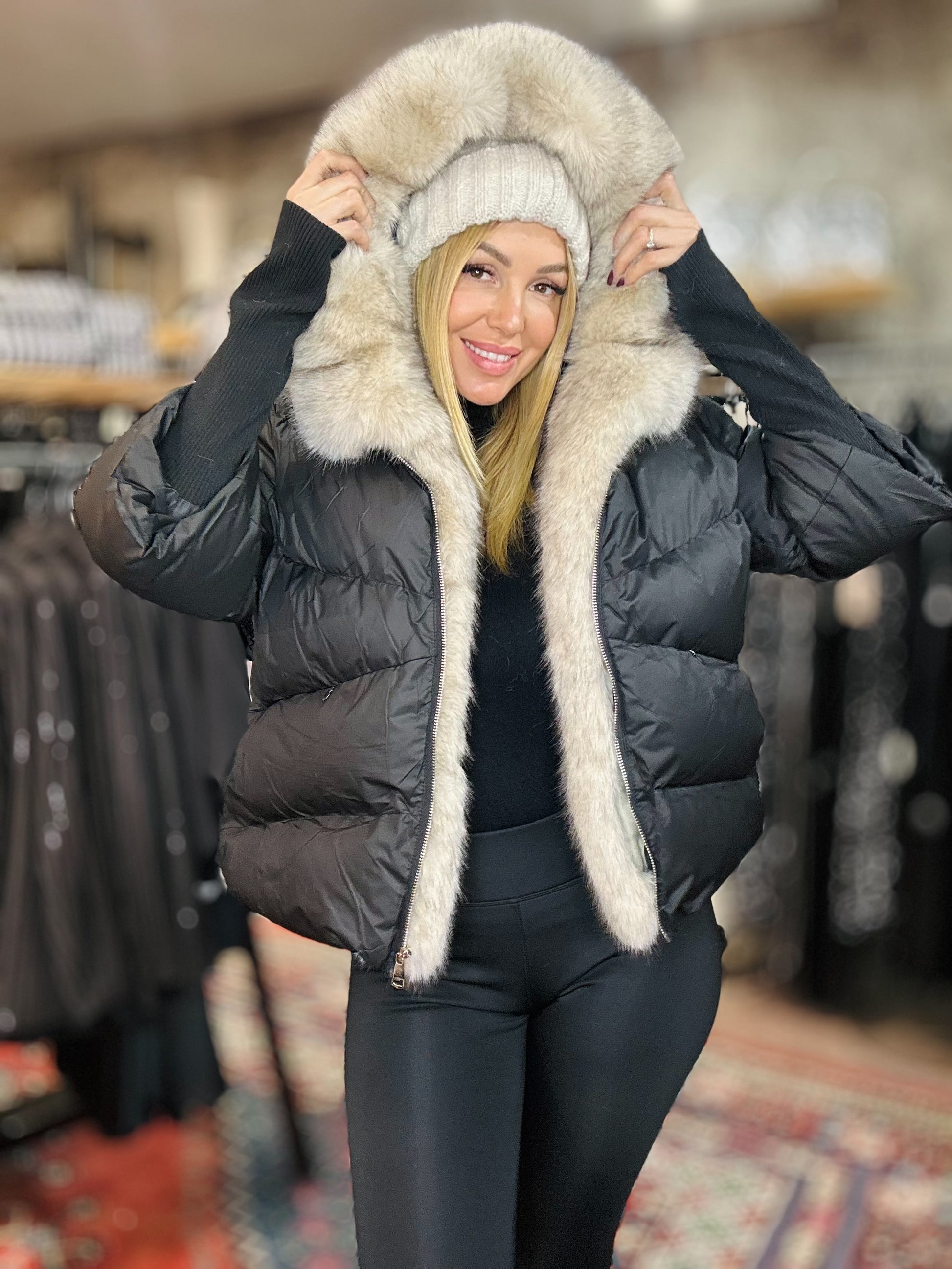 Doudoune avec fourrure amovible taille super bien peux convenir jusqu’à la taille 44