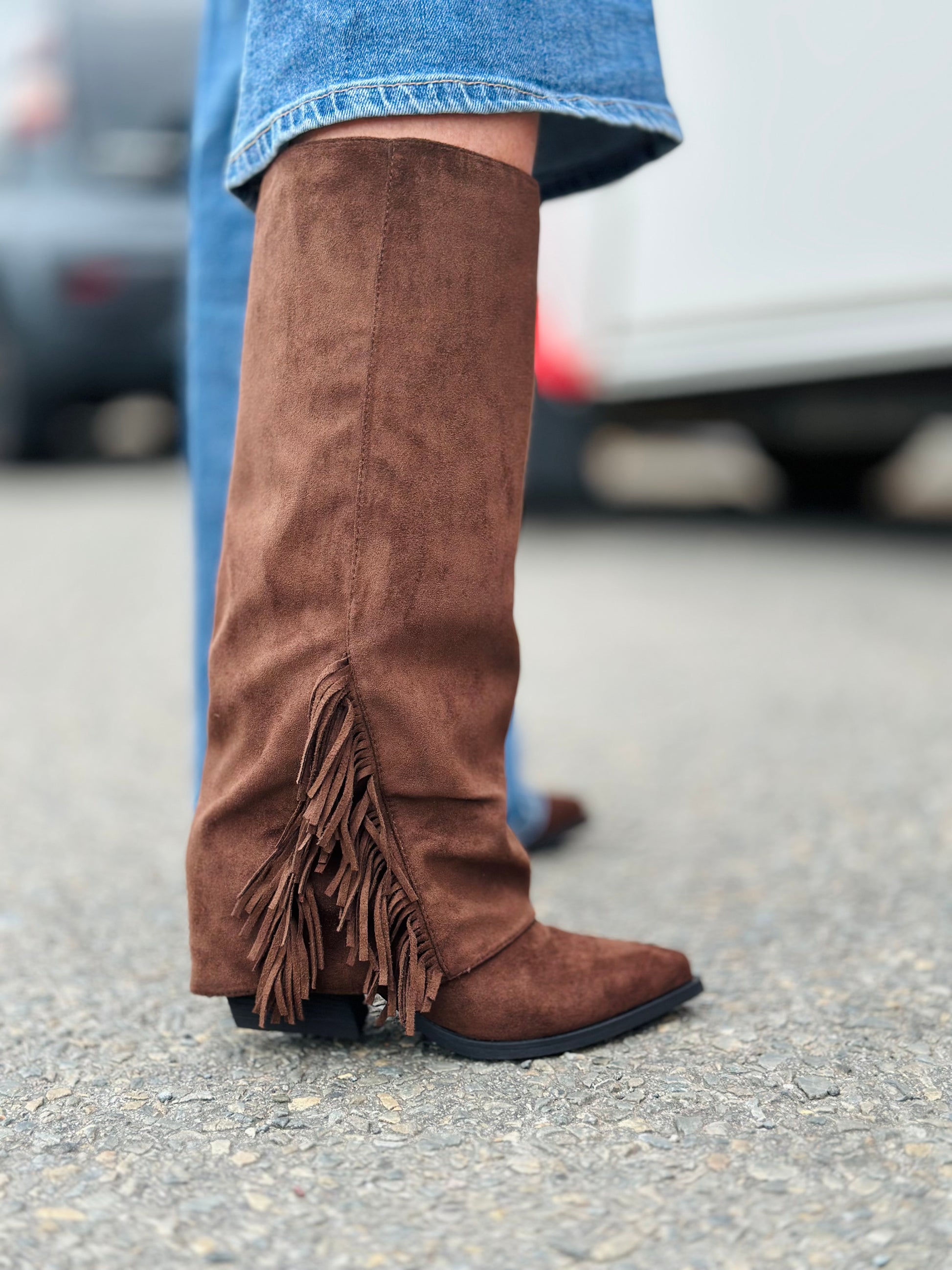 Santiag choco en matière suédine, chausse correctement prenez votre pointure habituelle