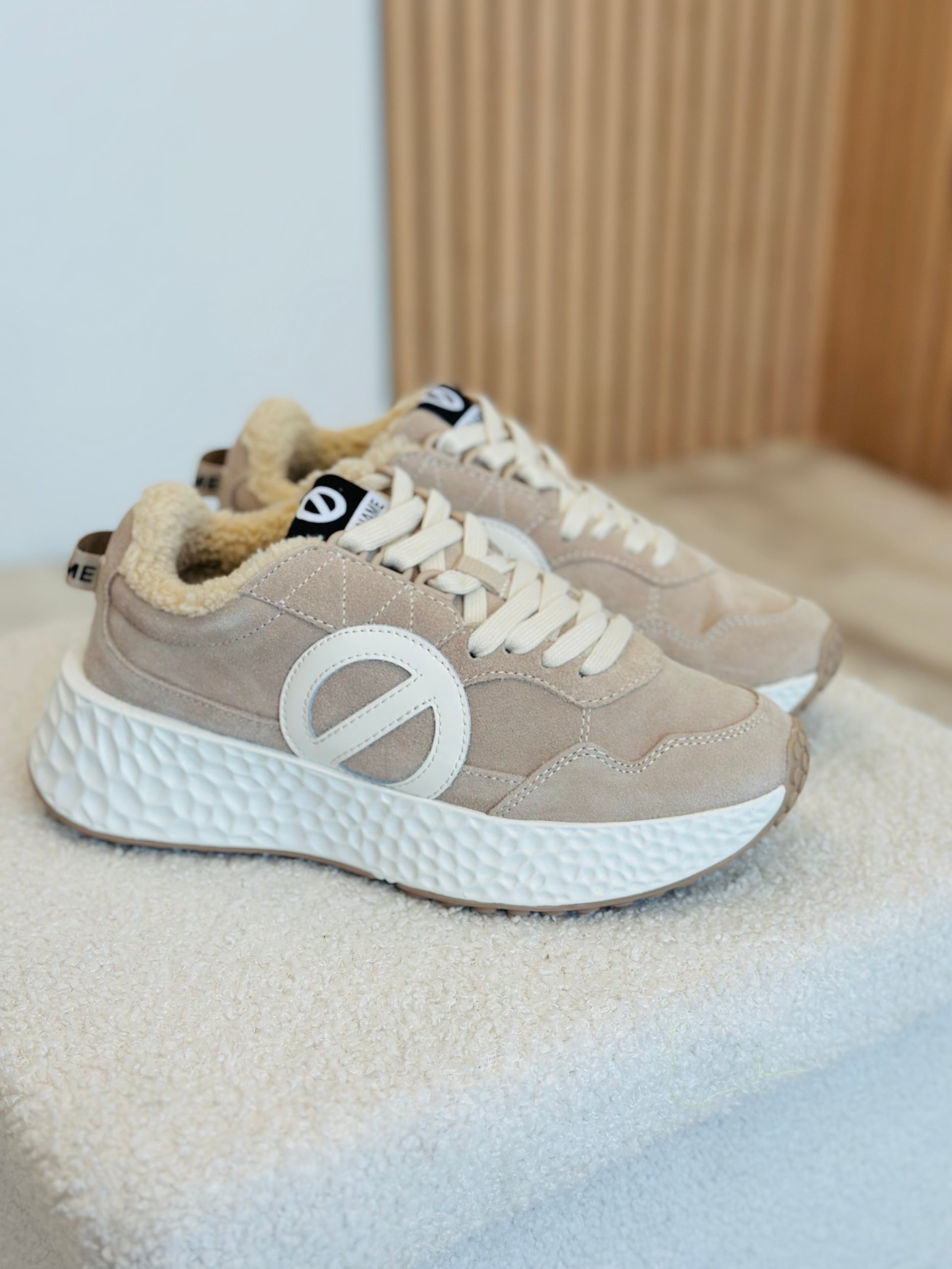 La CARTER JOGGER joue à fond la carte girly. Un mélange audacieux de cuir de vachette beige mélangé à une doublure en polyester bouclette alliant style et confort. Reconnaissable d’un seul coup d’œil grâce à son logo oversize et sa semelle extérieure crantée en EVA garantissant un amorti exceptionnel, cette sneaker NO NAME te permet d’affirmer ton girl power comme aucune autre !