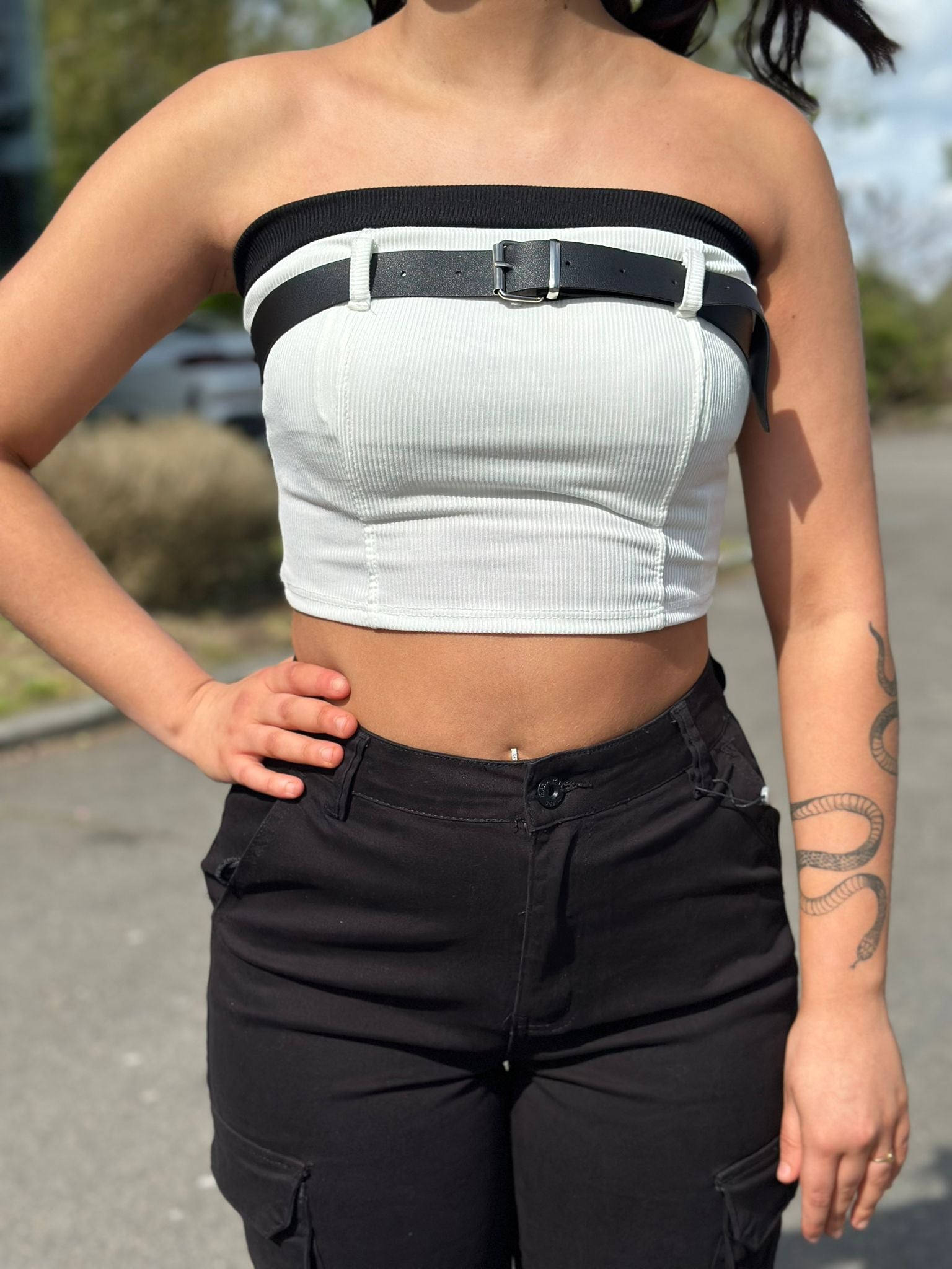 Le Top Sanary blanc est un choix de qualité pour votre garde-robe. Fabriqué avec un tissu blanc haut de gamme, il est doté d'une cenîrure supérieure pour une silhouette élégante et raffinée. Élégant et intemporel, il sera un ajout polyvalent et durable à votre collection de vêtements.