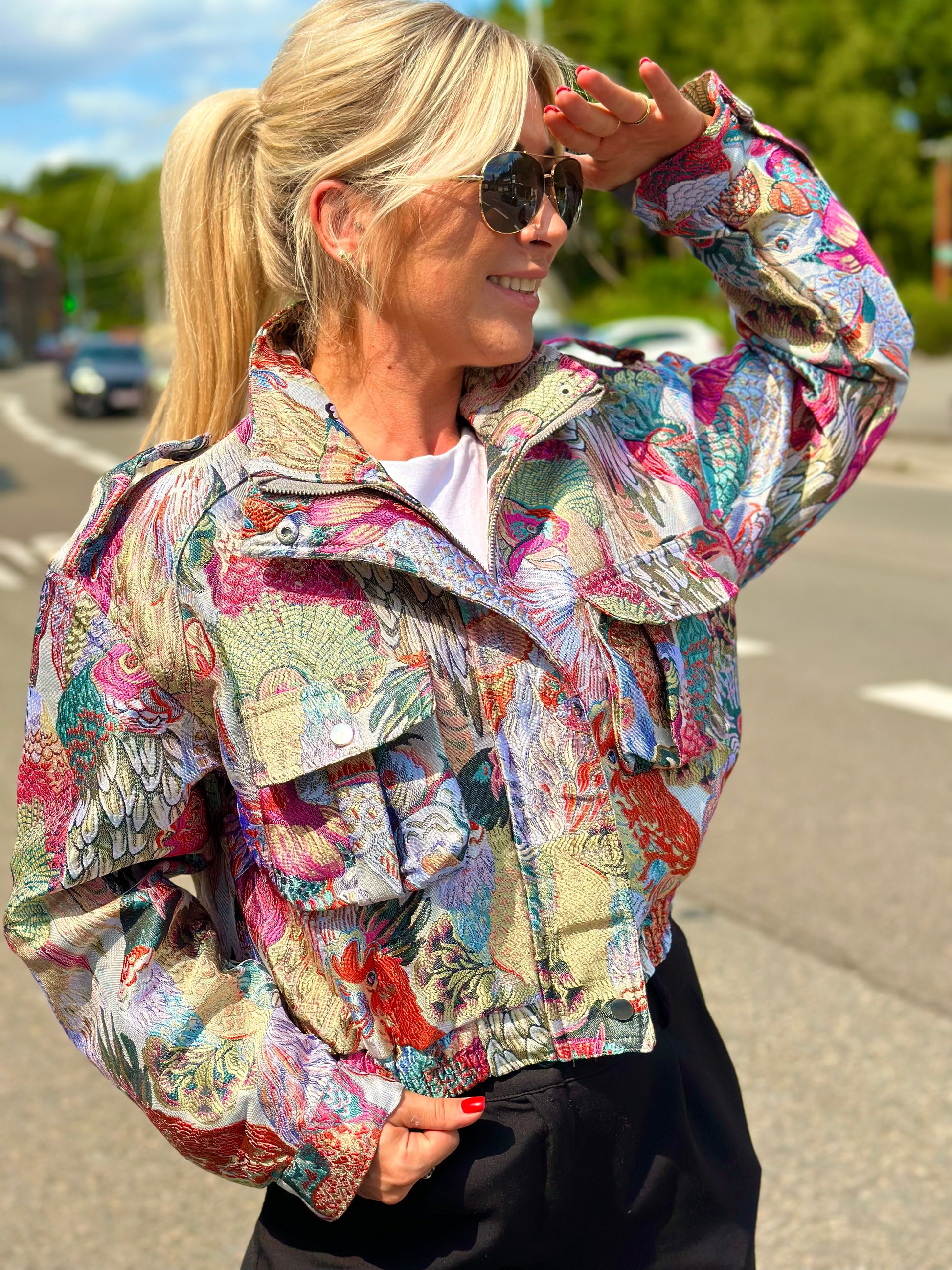 Fais tourner toutes les têtes avec cette veste bombers brodée aux couleurs éclatantes !